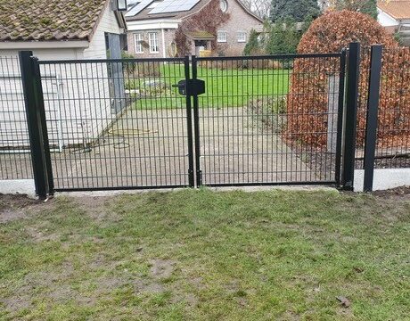 Onze tuinpoorten sluiten naadloos aan op standaard tuinafsluitingen en vormen een nette, stevige en veilige doorgang. Verkrijgbaar als enkele of dubbele poort, afhankelijk van de gewenste doorgang en uitstraling, en uitvoerbaar met gaasvulling of robuuste staalmatvulling, afgestemd op jouw woning en tuin.